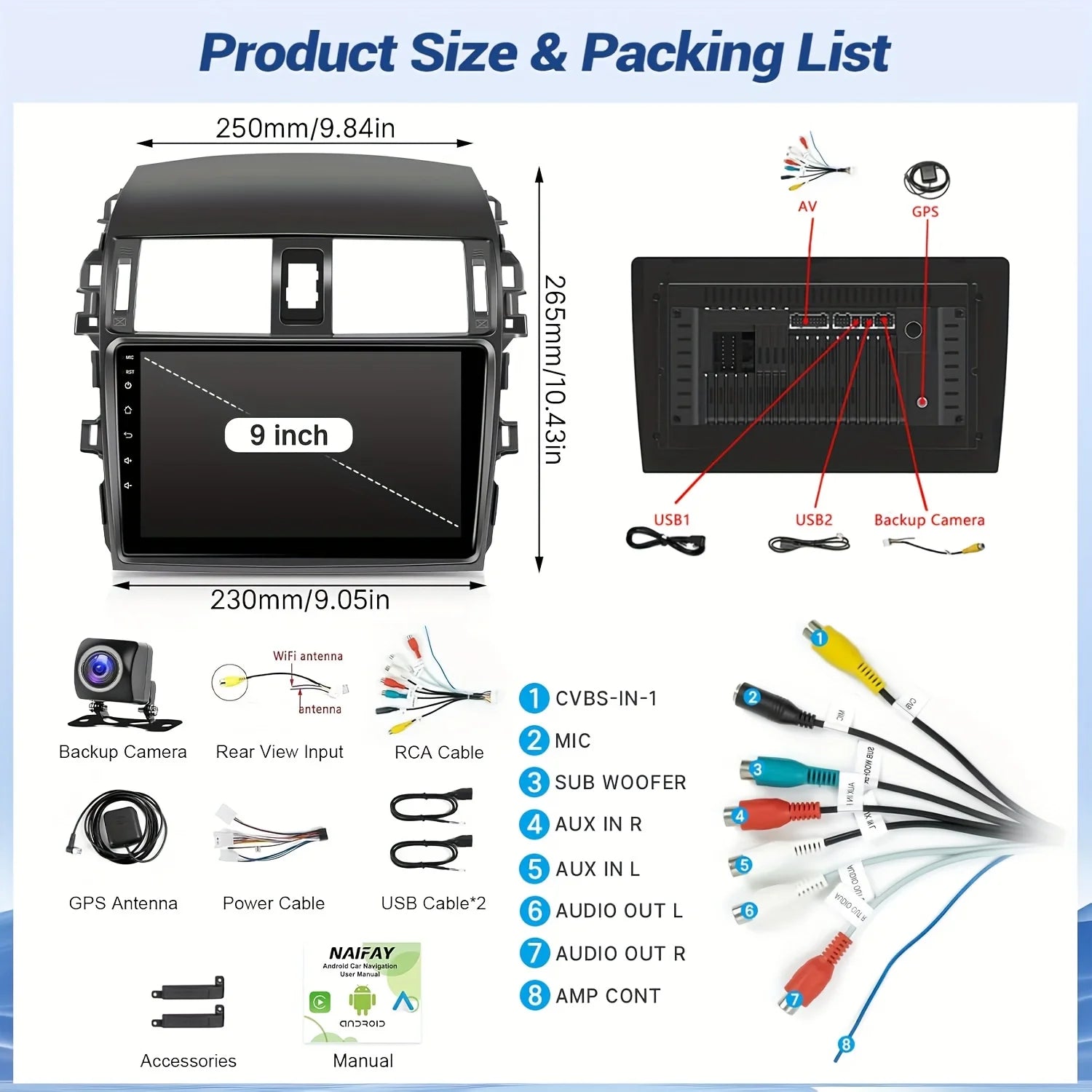 - Safety & convenience: AHD backup camera support, steering wheel control compatibility, wireless/wired MirrorLink, and easy install for Toyota Corolla 2009–2013.