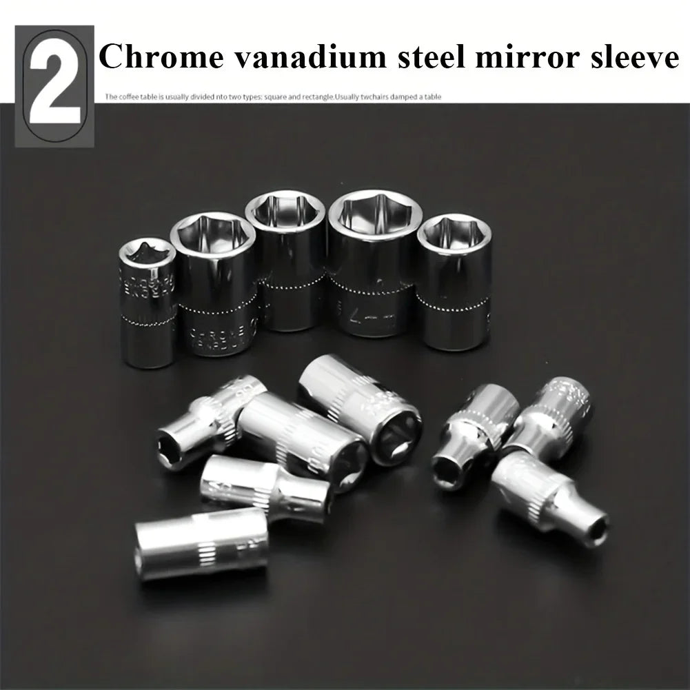 - Comprehensive 46-piece set includes 21% bit sockets and 1/4 drive components, plus 13 driver bits and a 1/4 quick-release ratchet handle for versatile fasteners.