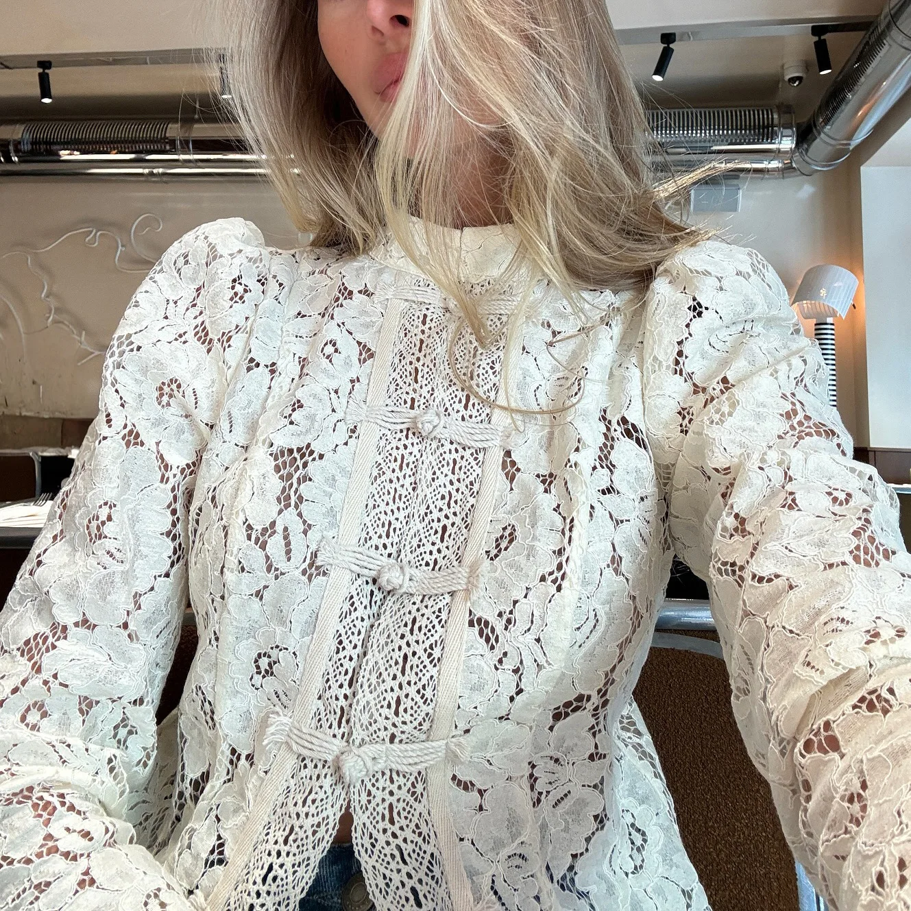 美跨境高级感衬衫改良新中式盘扣复古气质蕾丝衬衫修身上