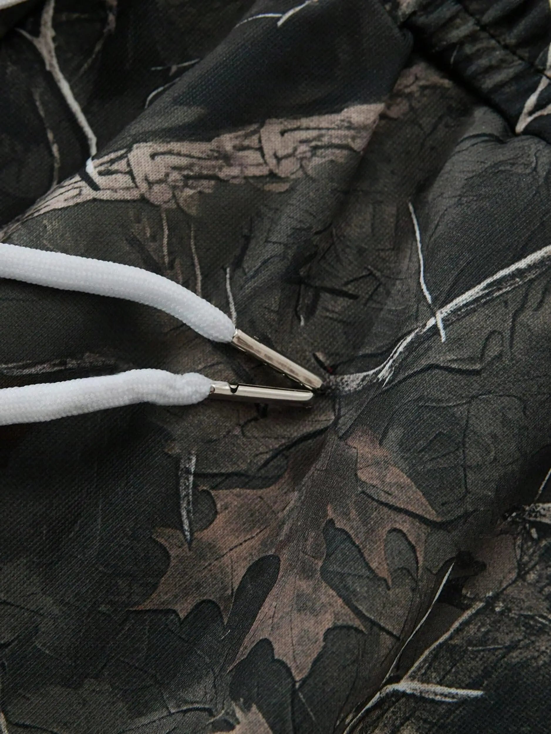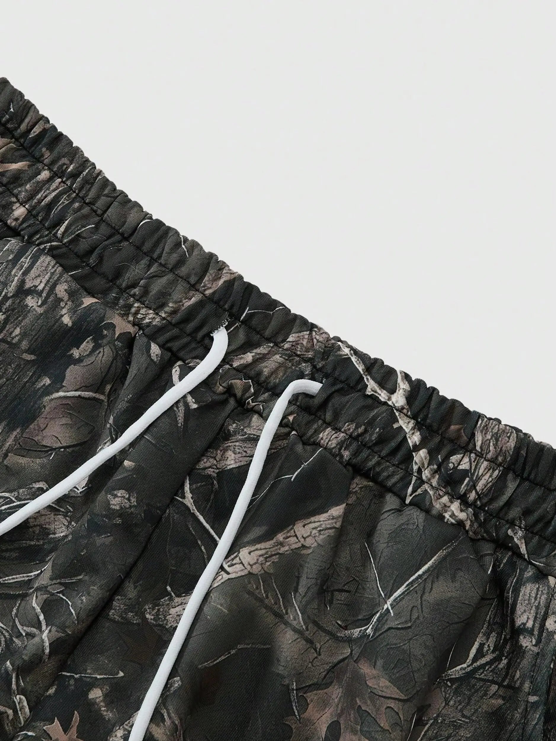 NONECN Men's Camouflage Leaf Patchwork Sweatpants With Pockets