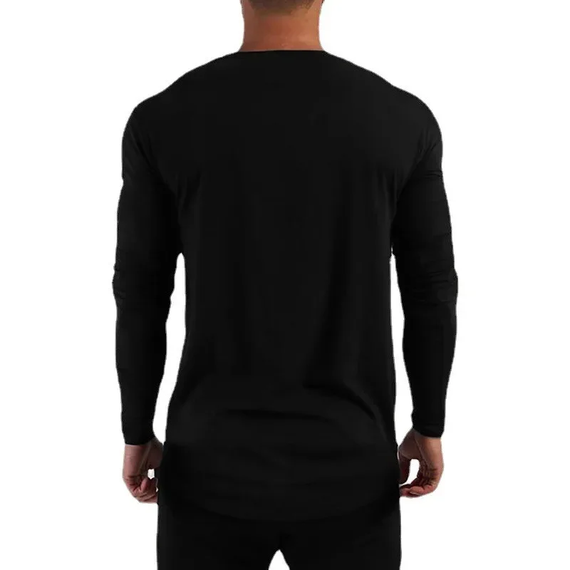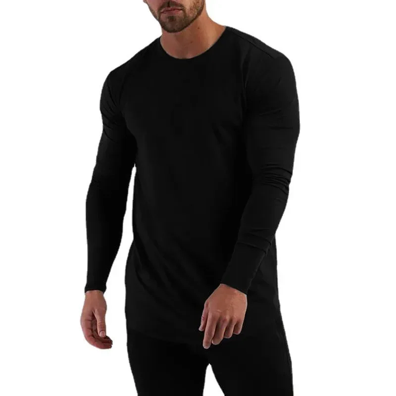 Plain Cotton Breathable Long Sleeve Clothing Gym Fitness Bodybuilding Sport T-shirts Mens Workout Casual Slim Fit Autumn Shirts
