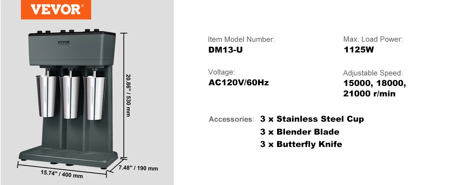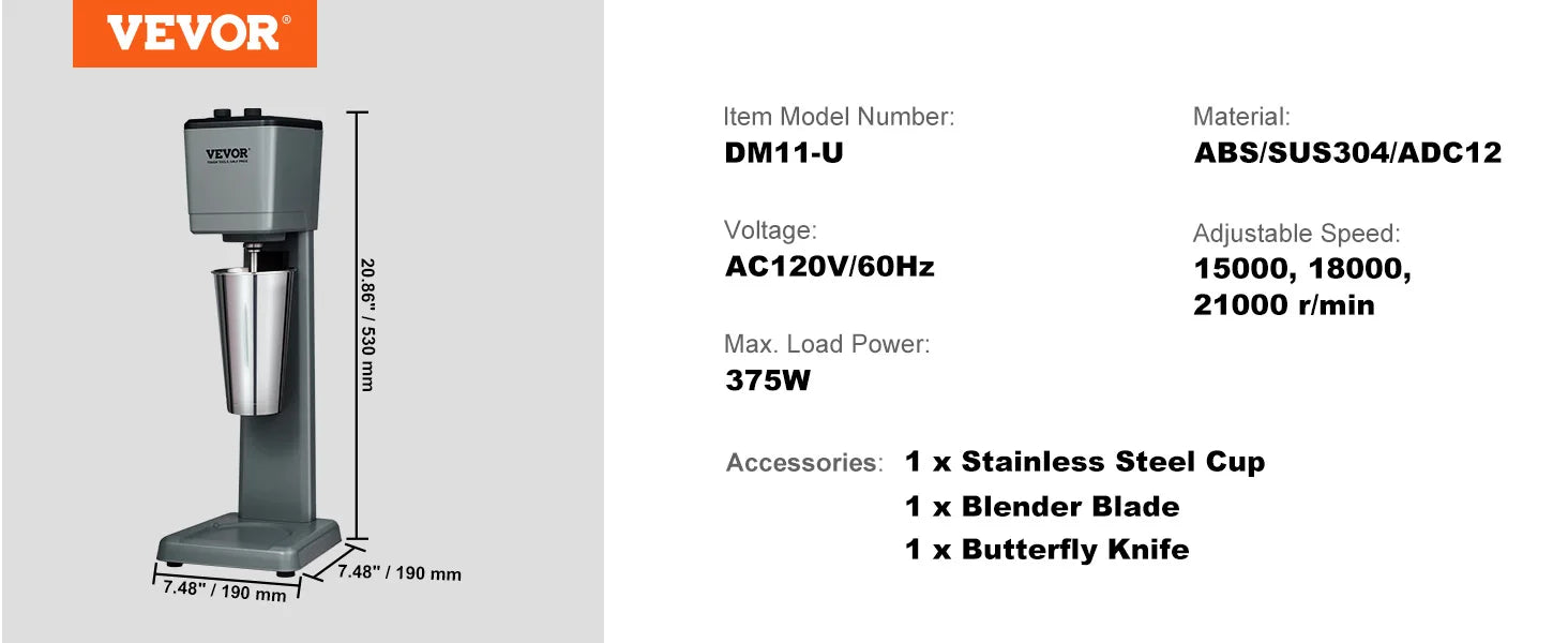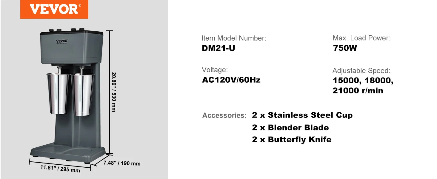Turn ordinary shakes into crave-worthy blends in seconds with the VEVOR Milkshake Maker, a double-head stainless blender built for speed, versatility, and reliable performance.