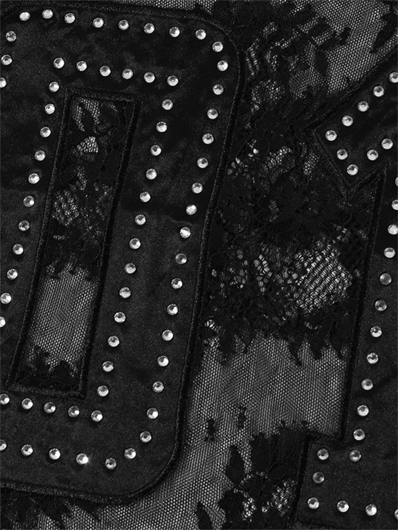 Turn heads this summer with a silhouette that blends sultry chic with everyday polish: the Letter Rhinestone Lace Jersey Top. Crafted from stretch polyester lace and cut into a regular-length, slim-fit tee, this piece delivers a see-through midnight vibe that’s perfect for parties, nights out, and unforgettable evenings.