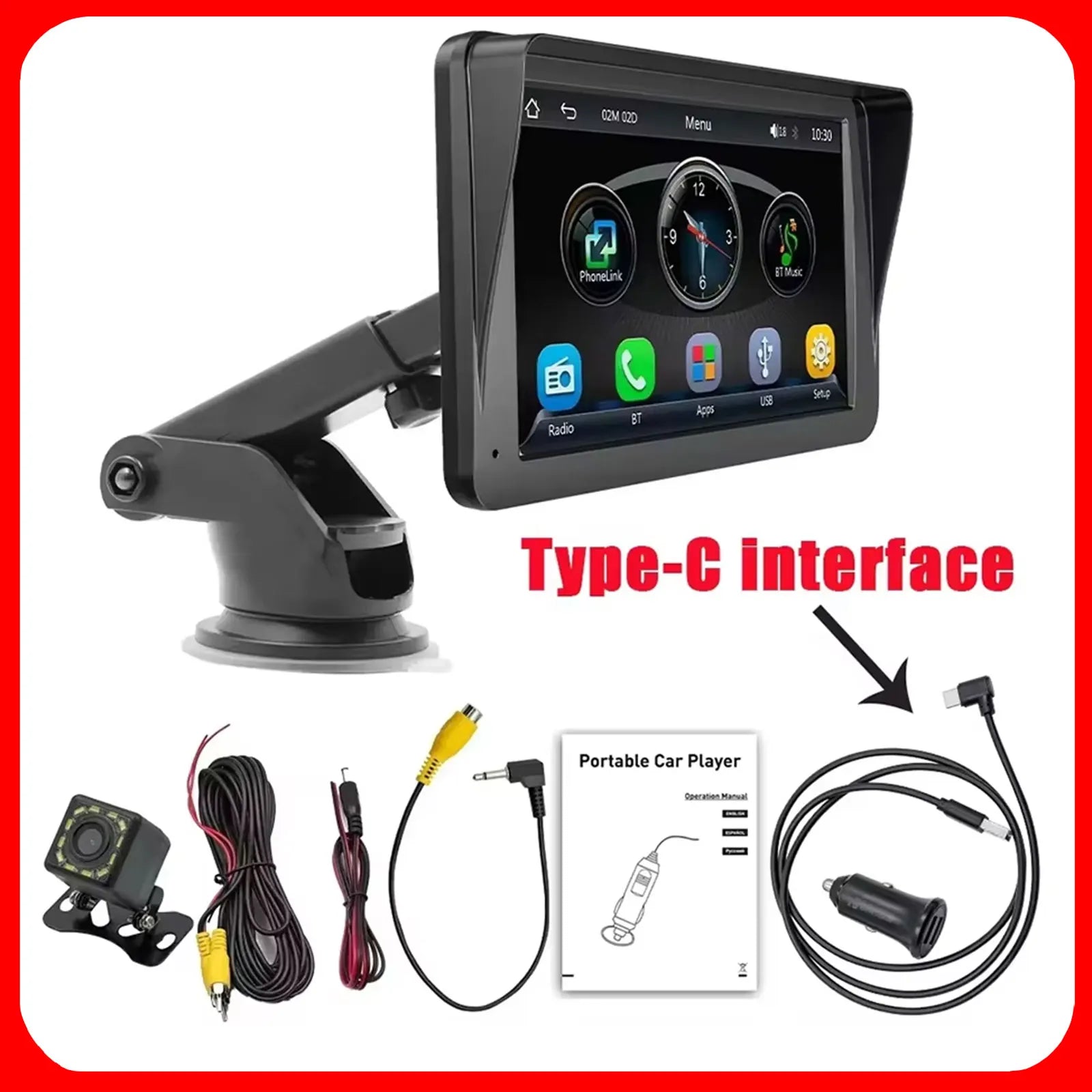 - Media, connectivity & storage: radio tuner, USB flash drive/SD card playback, Bluetooth streaming, TF card support, plus USB and Type-C interfaces for easy media transfer.