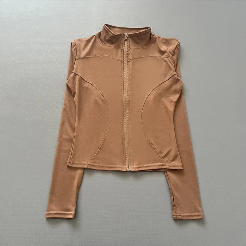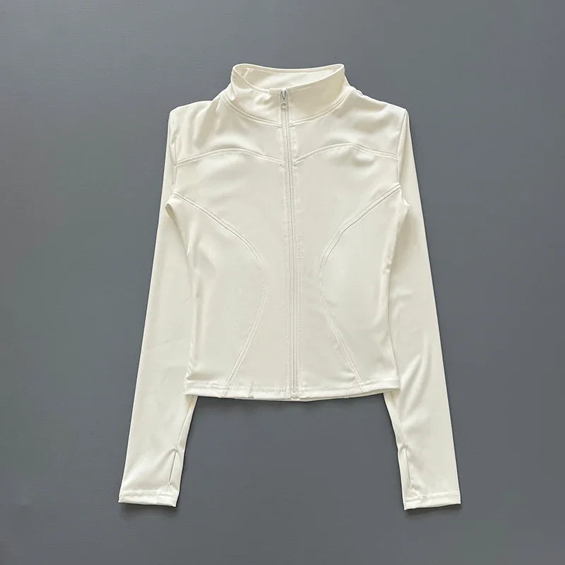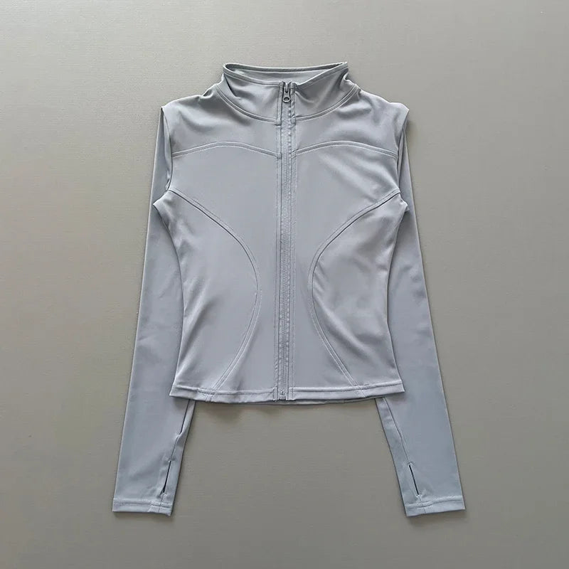 Women's Workout Jacket Stretch Fitted Zip Front Long Sleeve Running Yoga Slimming Waist-Cinching Stand Collar Quick-Dry Sportswe