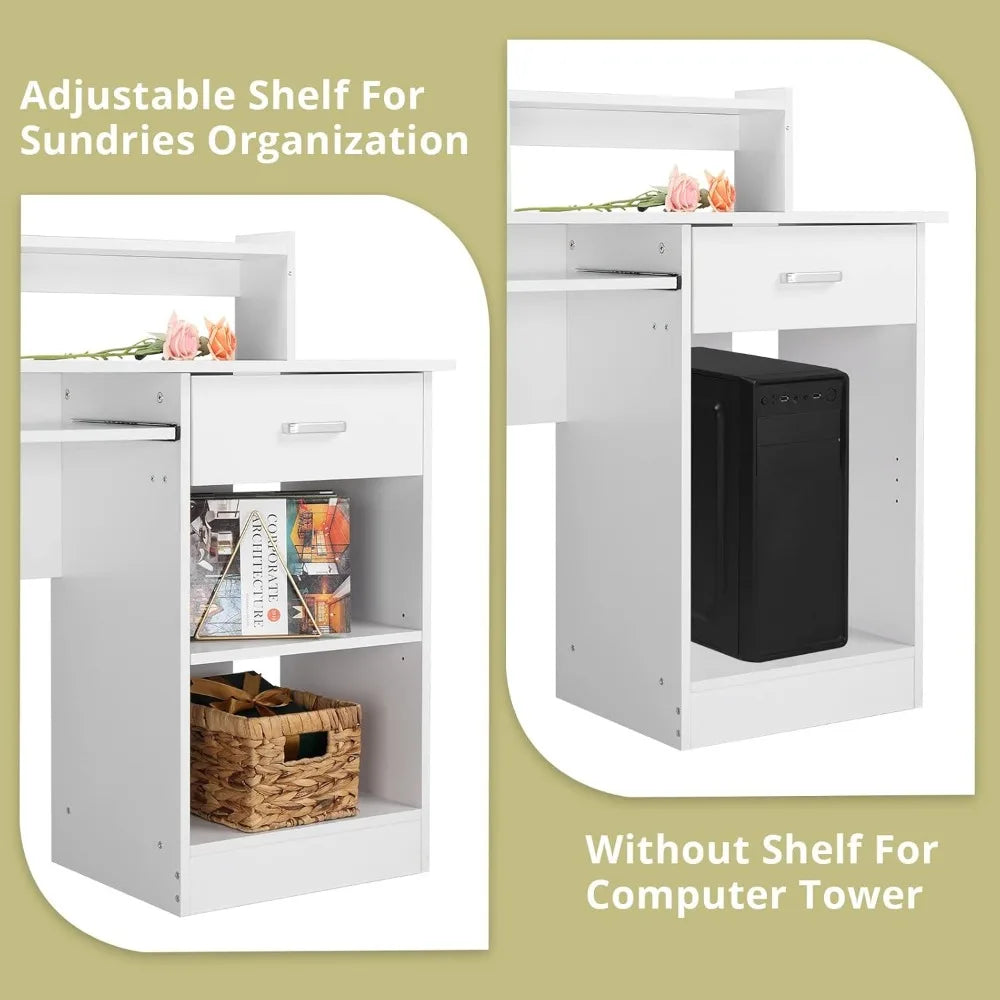 - Smart storage options: Open lower storage with an adjustable shelf for CPUs, books, or supplies, plus an extra desktop shelf for monitors, speakers, or decor.